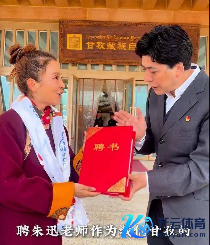 据“中央播送电视总台藏语”微信视频号5月30日音书,朱迅获聘任为甘孜文旅宣传实施大使,甘孜州文旅局局长刘洪为其颁发聘书。