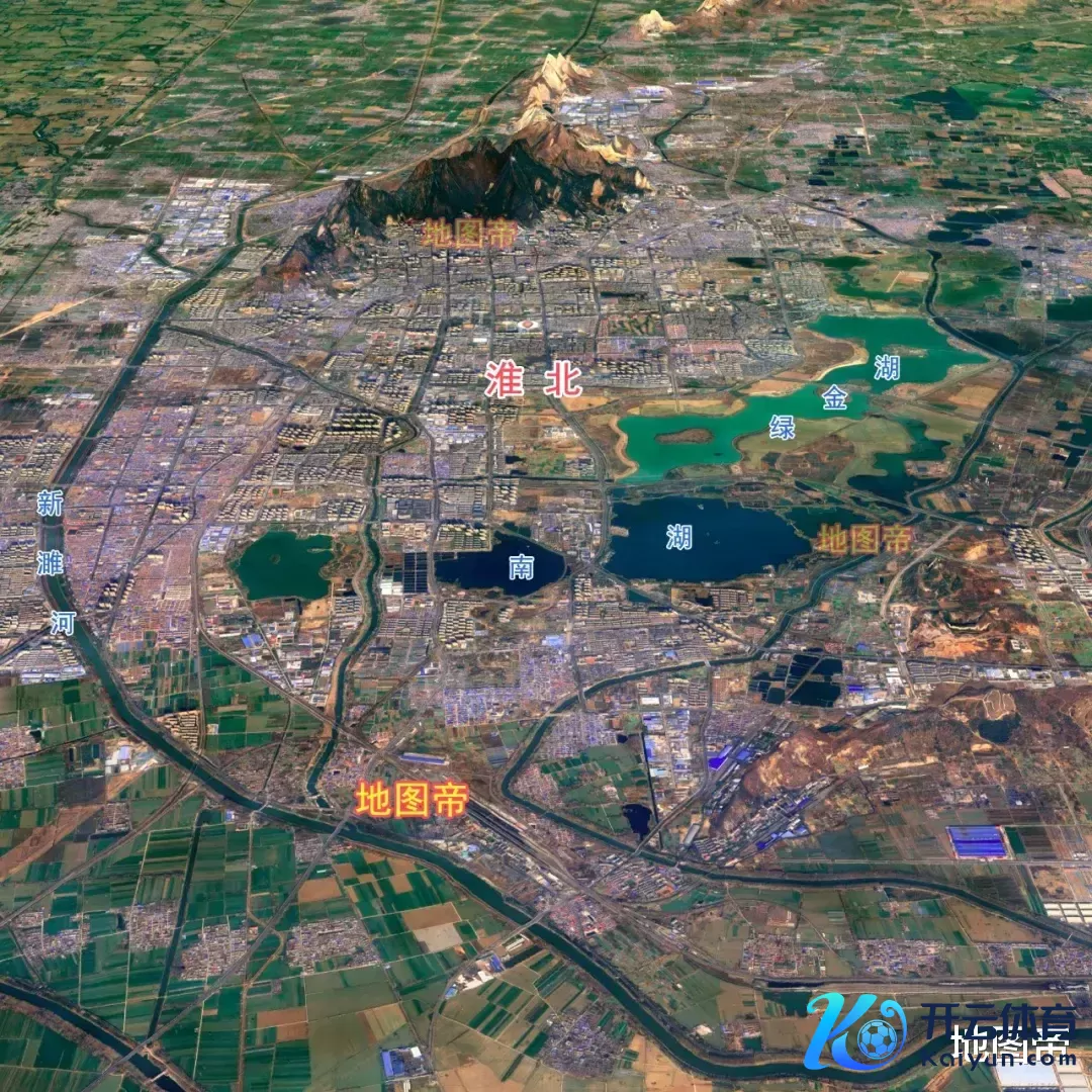淮北市区八成为新濉河、乾隆湖、南湖、绿金湖围成,城区海拔30-70米,市中心纬度是北纬33°57′23″。