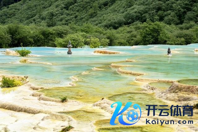 黄龙以边界广博、结构奇巧的露天钙华景不雅着名于世。从山顶奔腾而下的泉水,富含碳酸钙,历经万年的千里积,酿成了重重叠叠、色泽金黄的梯田状彩池。三千多个彩池形态区分,池水透露,在阳光照耀下,呈现出或碧蓝、或翠绿、或鹅黄的斑斓颜色,远看如一条金色的巨龙盘旋于雪山峡谷之中。