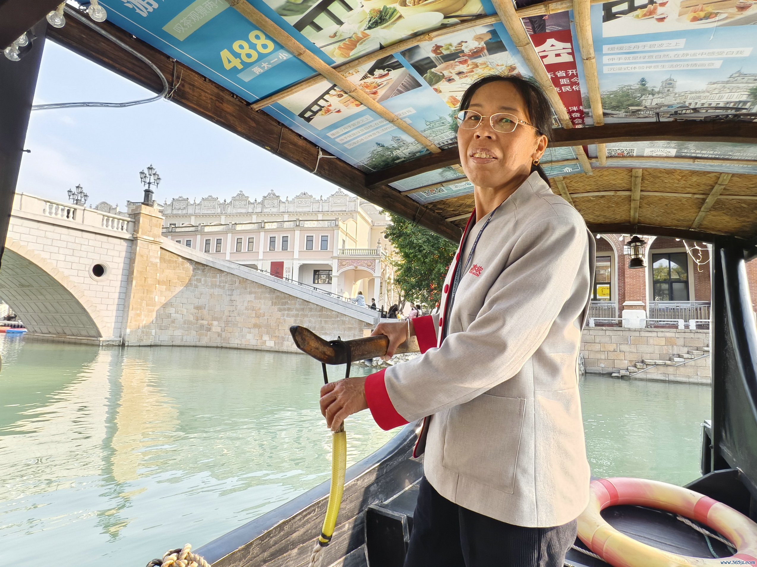 徐银英在赤坎古镇景区当起了“水上级机”。周妤洁 摄