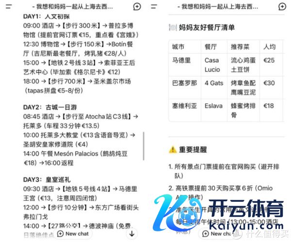 案例:和姆妈沿途去西班牙旅行行程安排含预算(玩)让我感触的发现DeepSeek 念念得非凡周全,要道统统这个词盘算推算立等可取,不错随处随时更转业程同步更新,太nice啊!庸俗众人应该和我不异看一册旅游攻略册本吧!
