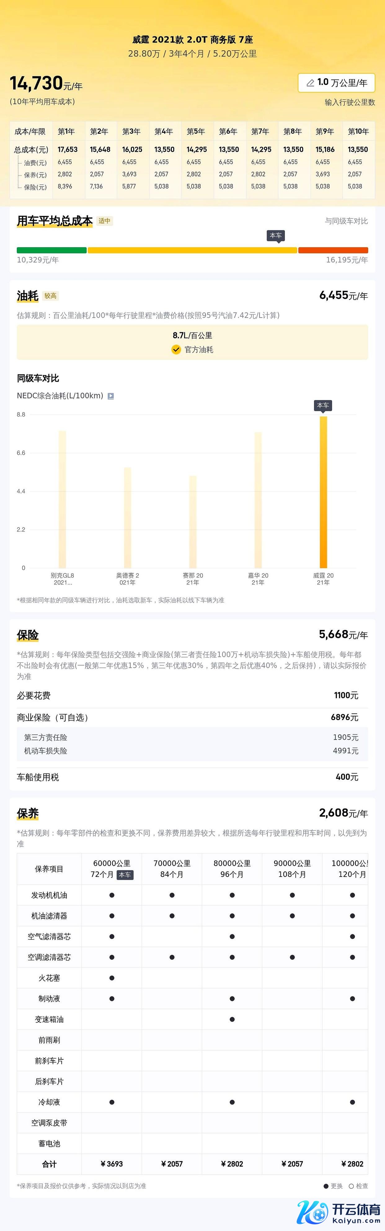 按照一年2万公里的行驶里程来算,油费或者14177元,调度5000元掌握,保障6000元掌握,加起来一年或者25177元。
