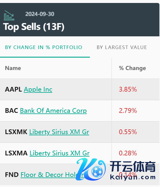 同期,伯克希尔的前五大卖出方针永诀为苹果、好意思国银行、Liberty Sirius XM Group, Series C(LSXMK.US)、Liberty Sirius XM Group, Series A (LSXMA.US)、Floor & Decor(FND.US)。