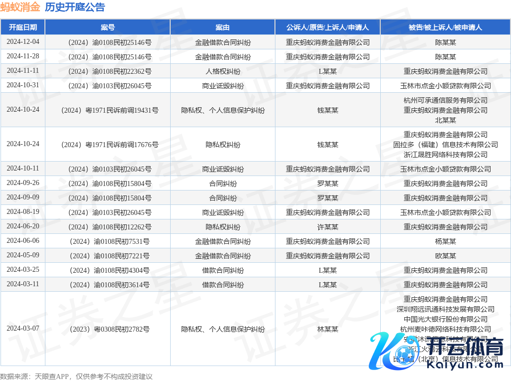 本站音尘,把柄天眼查APP透露九游体育官网登录入口,近日公布了一则重庆蚂蚁消耗金融有限公司手脚原告/上诉东说念主的开庭公告,详备执行如下: