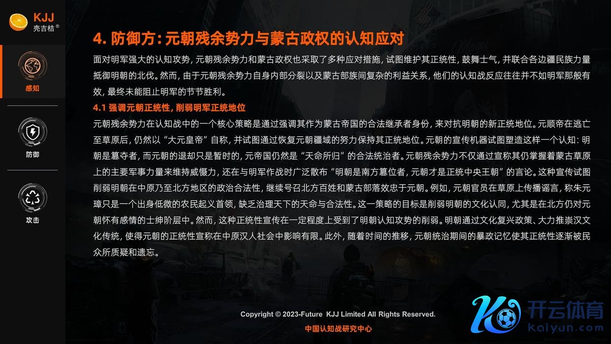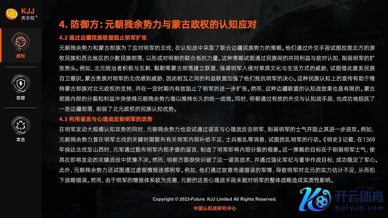 明军北伐(1368-1380年)不仅是一场军事交游,更是一场复杂的证据战。在这一进程中,袭击方(明朝)、瞩目方(北元)、中立第三方(周边民族与政权)以及袭击方的盟军(所在势力和少数民族盟友)通过不同的形态、策略和妙技,张开了强烈的证据作战。明朝通过文化认可、宣传公论、酬酢策略等多方面的证据战妙技九游体育app官网,收效迟滞了北元的残余势力,缓缓成立了我方的正宗地位。同期,明军还利用盟军的协同作用,在北伐进程中扩大了影响力,进一步安适了明朝的总揽基础。