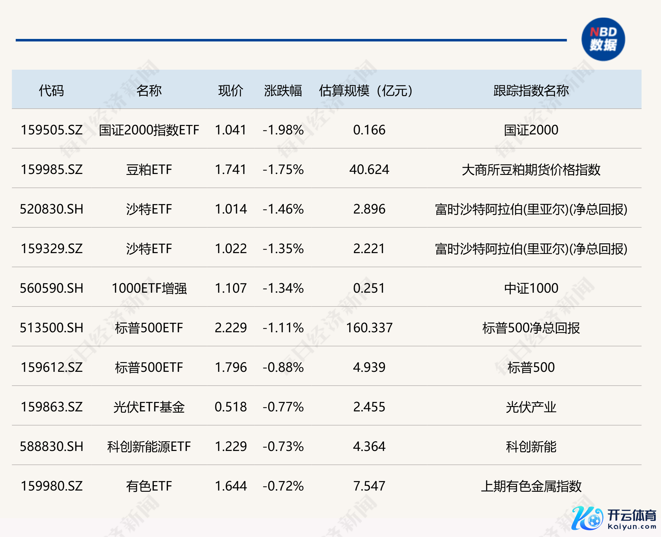 下落方面,国证2000、豆粕、沙特别ETF跌幅居前。