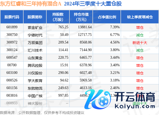 东方红睿和三年执有搀杂A为搀杂型-偏股基金,把柄最新一期基金季报显现,该基金钞票竖立:股票占净值比97.75%,无债券类钞票,现款占净值比2.53%。基金十大重仓股如下: