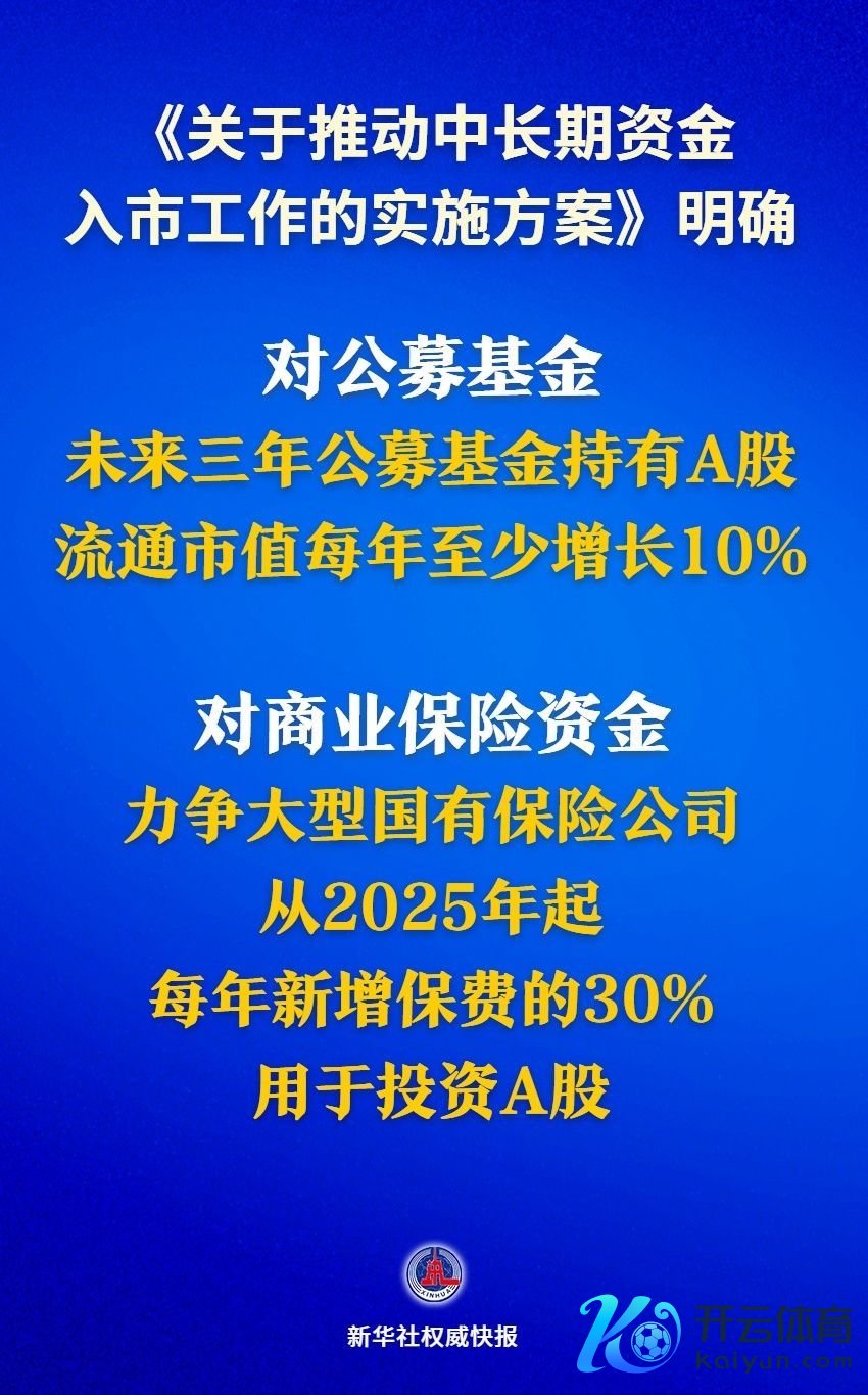 一是进步实践投资比例。《实践决策》明确了稳步提高中永久资金投资A股畛域和比例的具体安排。对公募基金,明确公募基金握有A股运动市值将来三年每年至少增长10%。对买卖保障资金,力图大型国有保障公司从2025年起每年新增保费的30%用于投资A股,这也意味着将每年至少为A股新增几千亿的永久资金。第二批保障资金的永久股票投资试点将在2025年上半年落实到位,畛域不低于1000亿元,后续还将徐徐扩大。