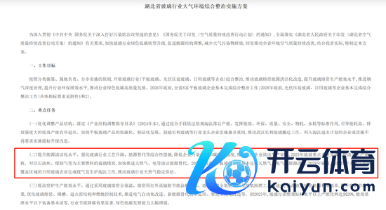 对于湖北玻璃行业石油焦工艺产线要在2026年底前基本完成自然气、电气化动力改良,该贸易商认为可能26年还会有革新变动,当下暂时不好说,需要一个经由。(原文如下图;文献:鄂环发〔2024〕12号)