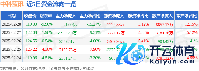 本站音书,遗弃2025年2月28日收盘,中科蓝讯(688332)报收于110.0元九游体育官网登录入口,下落9.9%,换手率14.22%,成交量6.26万手,成交额7.12亿元。