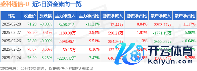 本站音问现金九游体育app平台,收尾2025年2月28日收盘,盛科通讯(688702)报收于71.29元,下落9.99%,换手率2.04%,成交量4.12万手,成交额3.04亿元。