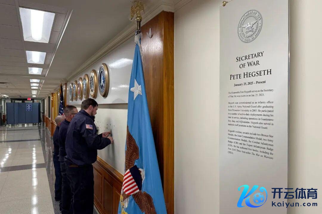 9月5日,在好意思国总统签署将国防部更名“干戈部”的行政令后,使命主谈主员在五角大楼废除旧象征(图/好意思联社)