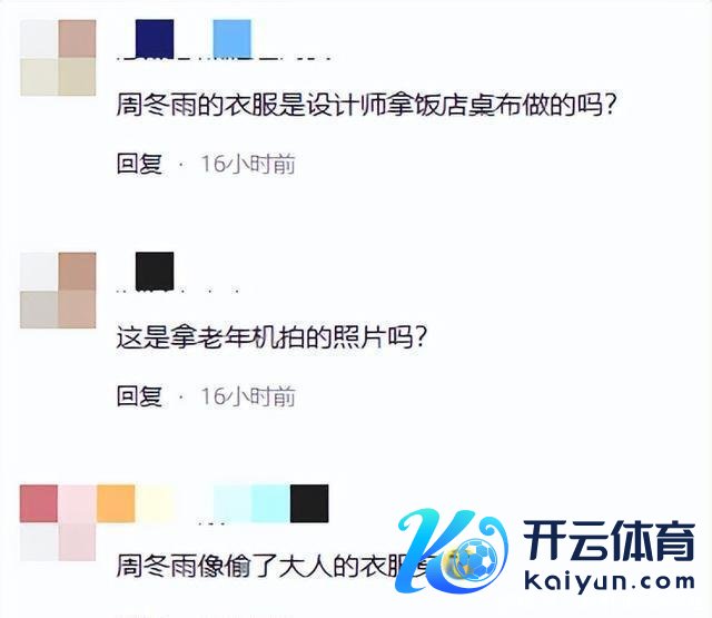 更有网友辣评示意,像是径直从饭铺的抹布拿来作念的。 还有网友说周冬雨像是偷穿了大东谈主的衣服雷同。 至心但愿,周冬雨下次走红毯的造型,不错不再被网友们吐槽。