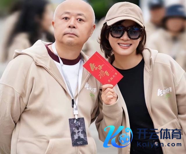 开机庆典上,孙俪与导演刘进合照,戴着墨镜,穿戴印有剧名的棒球服,笑颜温暖灿烂。