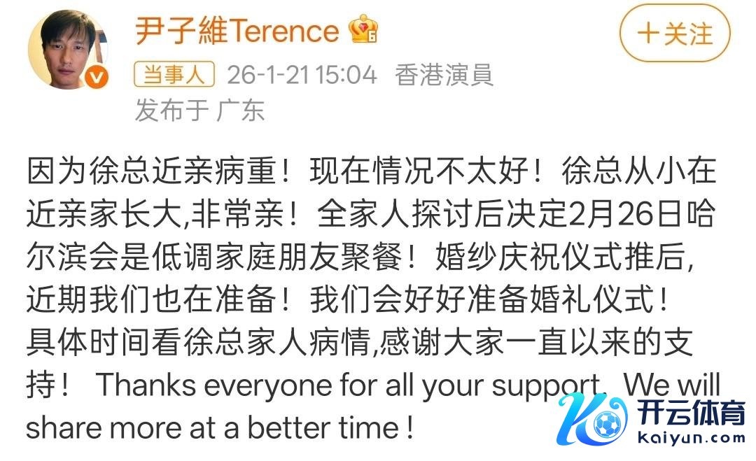 1月21日,尹子维在酬酢平台发文婚典延后,这波操作告成让全网期待的“大嫂婚典”按下暂停键!