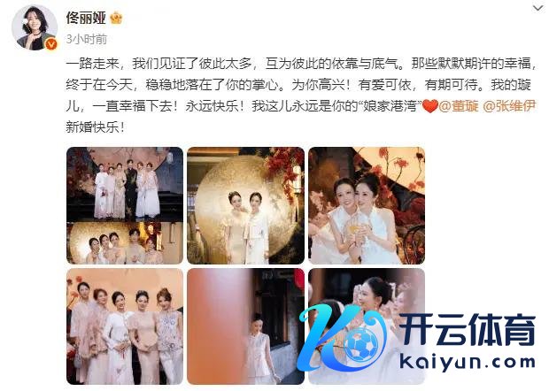 27 日,佟丽娅在搪塞平台晒出董璇的婚典像片,同步发布笔墨为好友奉上新婚祝贺。她在文中写谈:"全部相伴于今,咱们见证了互相太多东谈主生片断,早已成为对方的依靠,亦然互相心里的底气。往时那些暗暗为你期盼的幸福,终于在今天,稳稳地落到了你的手里。真为你应承!往后有爱不错依靠,有将来值得期待。我的璇儿,一定要一直幸福下去,永远保捏欢乐!记着,我这里永远是你的‘娘家港湾’!董璇、张维伊,新婚欢乐!"