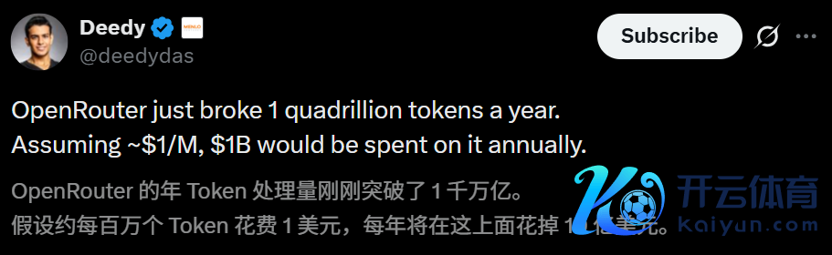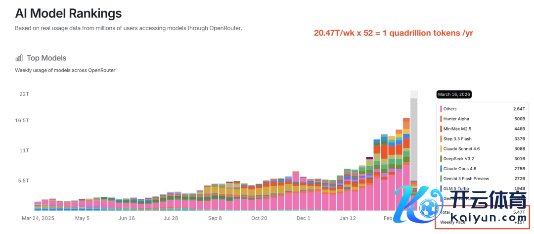 一千万亿,这不是什么天文物理的不雅测数据,也不是某个国度的GDP,只是某个AI模子团员平台的年化智元(Token)隐约量。