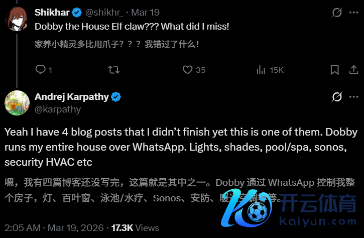 是的,多比还是通过WhatsApp牺牲了Karpathy的通盘屋子。