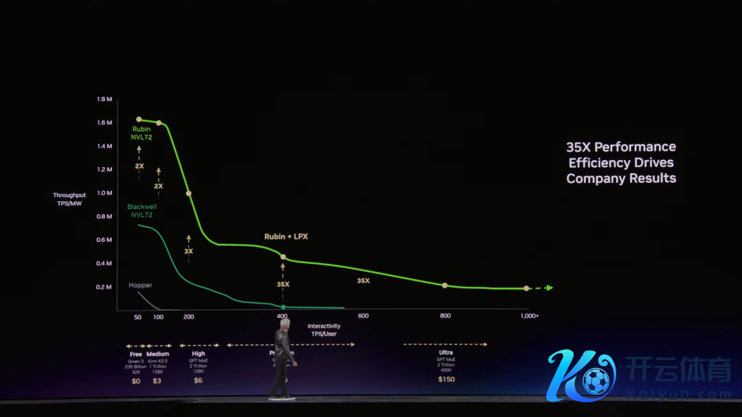 Grace Blackwell在每个价钱档位上把隐约量比Hopper拉高35倍,全新的Vera Rubin再在Blackwell基础上翻5倍,加上初度集成Groq LPU后在超等档位再暴涨35倍。