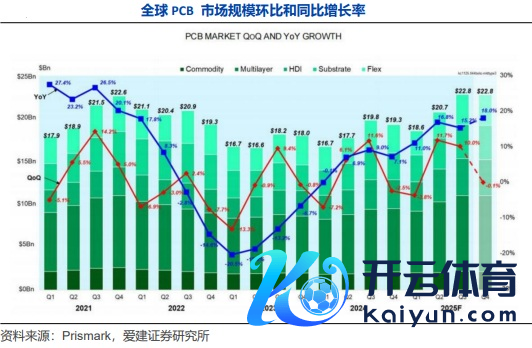 事实上,AI的快速发展,正带动PCB市集握续回暖。凭证Prismark,2025 年民众PCB市集畛域达849亿好意思元,同比增长15.4%;其中四季度市集畛域228亿好意思元,同比增长18%,增长动能握续强化。