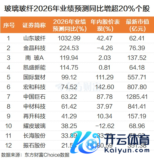 个股而言,玻璃玻纤板块中,山东玻纤瞻望2026年功绩同比增长1032.99%,本年以来该股高潮42.47%。金晶科技、南玻A、凯盛新能2026年功绩预测同比也翻倍。