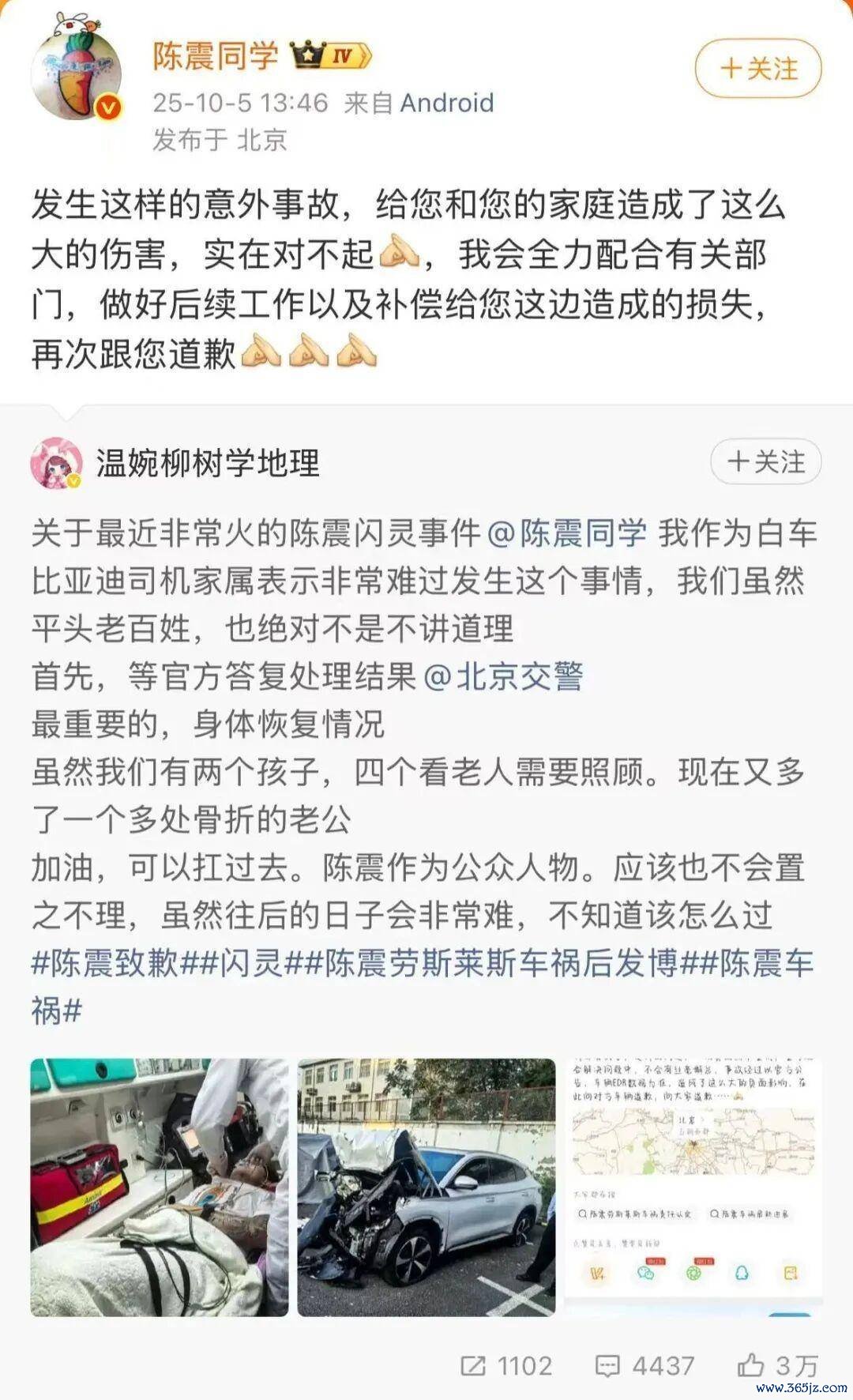 10月5日下昼,汽车博主陈震在微博发文就事故再次谈歉: