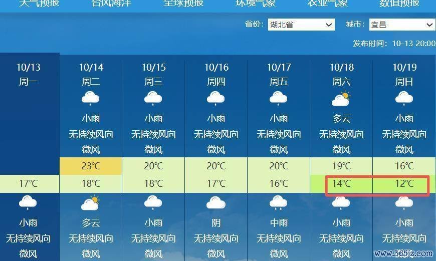 不外,很快,短袖就不错收纳入柜了:就在本周双休日,受新一股冷空气影响,湖北气温又将大幅下滑,多地气温或刷新低。比如,宜昌、潜江、荆州本周末气温低至12℃,秋裤、厚极少的被子得备好。