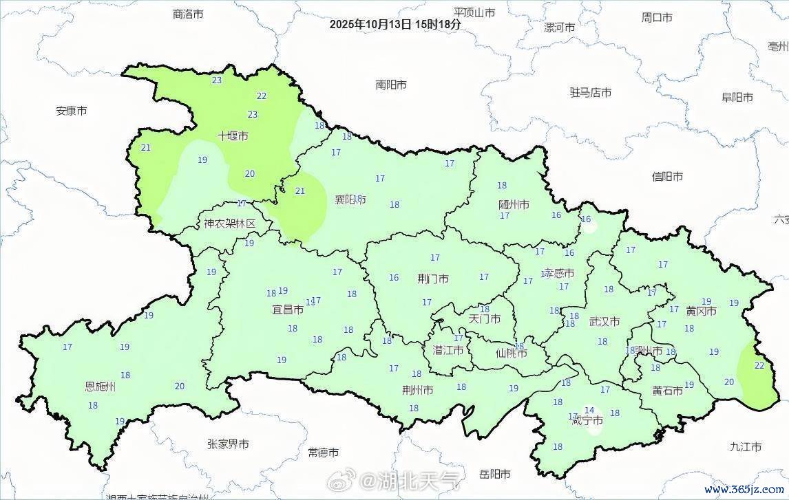 全省来看,13日15时,湖北大部地区阴天,气温17-22℃。今天湖北多地气温降至下半年来新低,许多一又友们已穿上外衣了吧。
