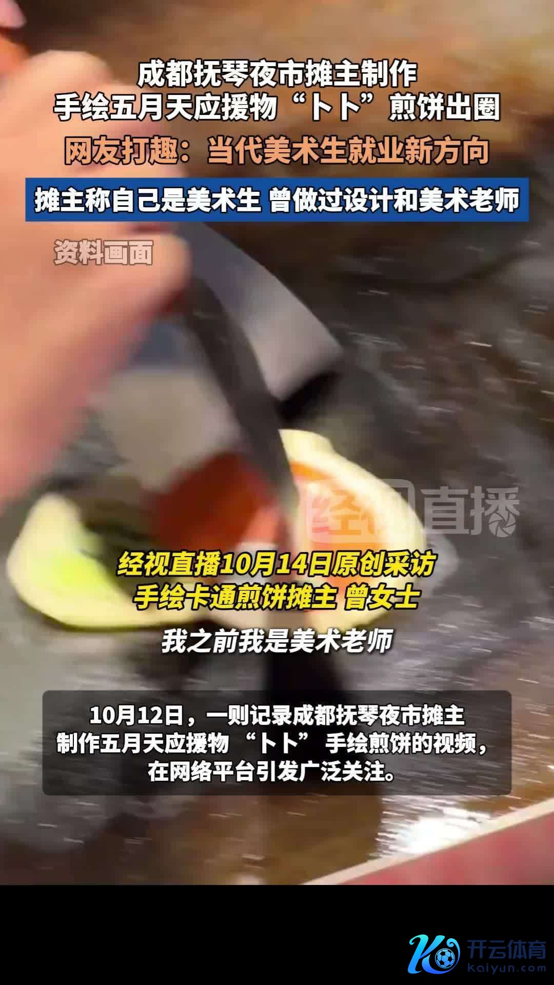 10月12日,一则记载成齐抚琴夜市摊主制作五月天应援物 “卜卜” 手绘煎饼的视频,在荟萃平台激励庸碌关爱。界限发稿,该视频已得益近200万次点赞,视频中的摊位凭借灵活可人的 “卜卜” 煎饼画图期间,得到多半网友深爱九游体育app(中国)官方网站,不少网友玩笑这是“现代好意思术生干事新见解”。